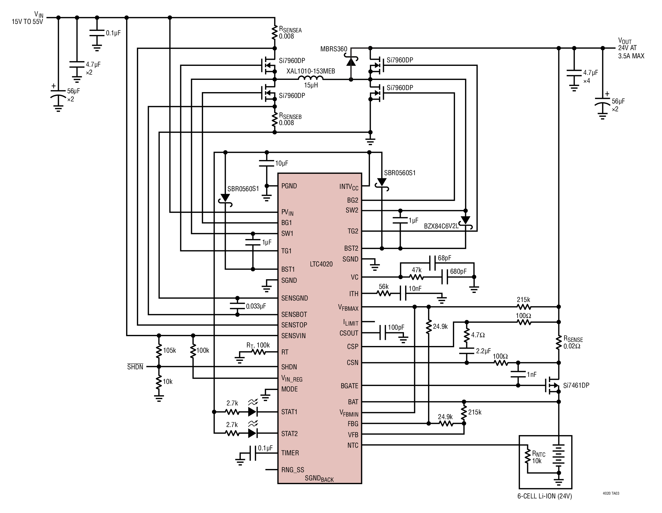 LTC4020 15V~55V 至 6 節(jié)離子電池 PowerPath 充電器