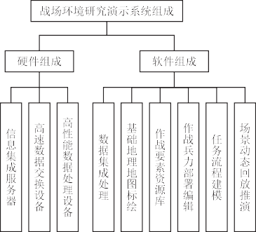 圖 1 戰(zhàn)場(chǎng)環(huán)境研究演示系統(tǒng)組成