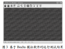 目前,該內(nèi)核示例已經(jīng)在Bochs模擬軟件中運(yùn)行測(cè)試過,測(cè)試結(jié)果如圖3所示。