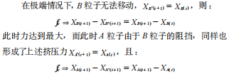 圖1中,B (t+1)是在低密度或自由狀態(tài)下B粒子應(yīng)該到 達(dá)的坐標(biāo),B*(t+1)是實(shí)際到達(dá)的坐標(biāo)??梢钥闯?,B*(t+1) 是由于擠壓力而形成的位置變化,從而擠壓力//可以表示 為(B (t+1) — B* (t+1)),總受力可等價為: