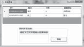 (2)護士站計算機軟件。本軟件初始界面如圖 6 所示。界面上方是使用示意圖,方便醫(yī)護人員迅速掌握系統(tǒng)原理及使用方法 ;中間部分是信息錄入欄,可錄入姓名、手機號碼、年齡三項基本信息,以及檔案、醫(yī)囑兩項高級信息,EPC 為標簽 ID,可將手持機掃描的標簽號顯示在此欄 ;界面下方是本機信息,包括服務(wù)器 IP 和服務(wù)器端口兩項信息。同一局域網(wǎng)下,掃描到空白標簽時,會在 EPC 欄顯示出標簽 ID, 此時可選擇在手持機端錄入或在計算機軟件端錄入。檔案管理界面可顯示已錄入的病人信息,不可更改,可以刪除,如圖 7 所示 ;醫(yī)囑管理界面可更新病人醫(yī)囑信息,如圖 8 所示。