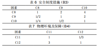 同理,通信網(wǎng)絡(luò)安全的判斷矩陣為: