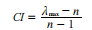 求出最大特征根以后,還需要判斷判別矩陣的一致性,其一致性指標(biāo)為: