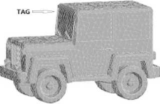 三維電磁仿真平臺(tái)(FEKO5.5)結(jié)合了多種精確計(jì)算方法,如矩量法(MOM)、快速多級(jí)子算法(MLFMM)、高頻近似方法物理光學(xué)法(PO)、一致性繞射理論(UTD)等,可以方便地處理電磁輻射、散射及電磁兼容問(wèn)題。文獻(xiàn)[7]指出,在對(duì)電大尺寸的物體進(jìn)行電磁仿真計(jì)算時(shí),綜合考慮計(jì)算精度和速度,F(xiàn)EKO是較理想的選擇。圖7所示是全尺寸汽車(chē)網(wǎng)格 模型圖。