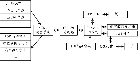 該系統(tǒng)由無線傳感節(jié)點(diǎn)、控制節(jié)點(diǎn)、無線路由節(jié)點(diǎn)、協(xié)調(diào)器節(jié)點(diǎn)、無線網(wǎng)關(guān)、監(jiān)控中心等6大部分組成。圖2所示為本