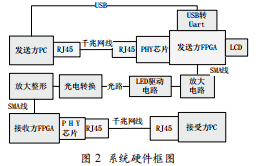 對于多路輸出情形,只需在發(fā)送方FPGA的輸出端再添加一路接收系統(tǒng)即可。這些系統(tǒng)包括光路系統(tǒng)、接收方FPGA、PHY芯片、網(wǎng)線和帶有網(wǎng)卡的接收方PC。