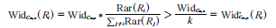 當(dāng)一個用戶Cm,n同時執(zhí)行關(guān)于資源R1,R2,…,Rk的請求時,將該用戶的帶寬資源按權(quán)重Rar(Ri),i=1,2,…,k,分配給每個任務(wù)。以WidRi,Cmn)^h,代表Ri在Cm,n分配到的帶寬,以Wid,Cmn)代表Cm,n的總帶寬,那么我們可以算出在Cm,n某個資源Ri所分配到的帶寬資源,并且將它于之前作對比: