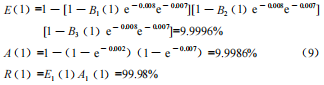 的可靠性均為99.2%,雷達(dá)信號(hào)輸出的可靠性均為99.3%;將上述數(shù)據(jù)代入式(5),則可得到年可靠性為: