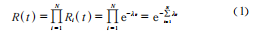 假設(shè)R(t)是指雷達(dá)信號(hào)通信系統(tǒng)在(0,,)時(shí)間段內(nèi)免于失敗的概率,各個(gè)子系統(tǒng)的可靠度分別為R失,失效率分別為4,(i=1,2,…,N),且各子系統(tǒng)的所有故障都是獨(dú)立的,則由概率論知識(shí)可知,整個(gè)串聯(lián)系統(tǒng)的可靠度R(t)為: