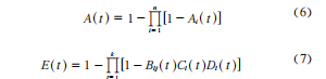 其中:A(t)為航管自動(dòng)化系統(tǒng)的總體可靠性,E(t)為傳輸系統(tǒng)和雷達(dá)信號(hào)的整體可靠性。