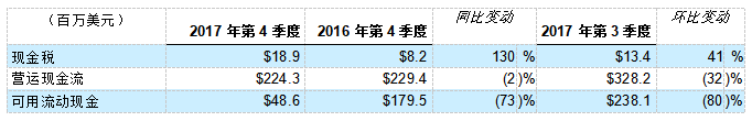 按現(xiàn)時產(chǎn)品訂單趨勢、未完成訂單水平和估計(jì)周轉(zhuǎn)水平,本公司預(yù)計(jì)2018年第1季度的收入總額將約為1,340百萬美元至1,390百萬美元。2018年第1季度的展望包括以股票支付報(bào)酬的預(yù)期支出約18百萬美元至20百萬美元。預(yù)期繳付所得稅的凈現(xiàn)金為18百萬美元至22百萬美元。