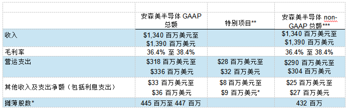 下表概列安森美半導(dǎo)體2018年第1季度的GAAP及non-GAAP展望。