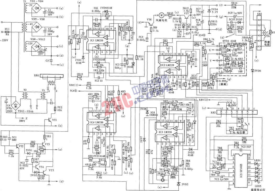 海樂(lè)DZC-1000W電磁爐電路( 注:VT1為3只同型號(hào)三極管并聯(lián),圖中只畫(huà)出其中一只)