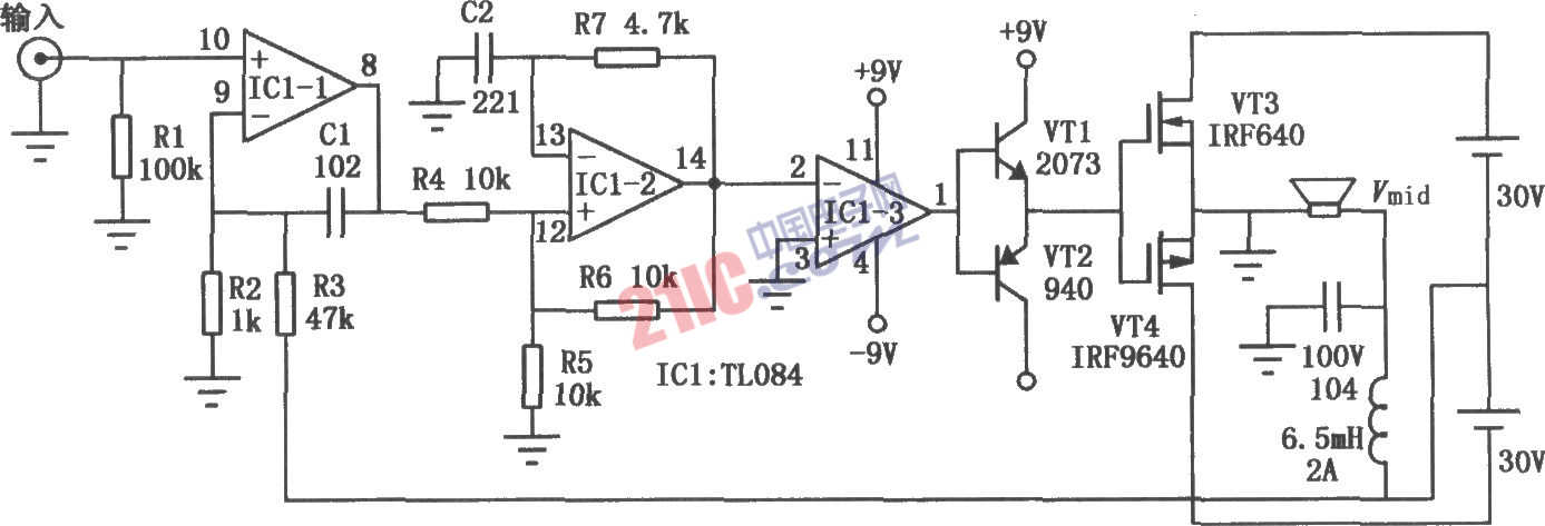 常規(guī)家庭影院數(shù)字功放需采用專用的集成電路,而這類集成電路生產(chǎn)廠家少、價(jià)格也較高。本電路可采用普通元件制作,功率為50W,空載時(shí)幾乎不消耗功率,滿載時(shí)的效率約85%,具有一定的實(shí)用價(jià)值。不過(guò)因其末級(jí)電源采用“浮地”,電路的電磁兼容性能較差。由于200kHz載波未濾除干凈,其信噪比和失真等指標(biāo)尚有待改進(jìn)。