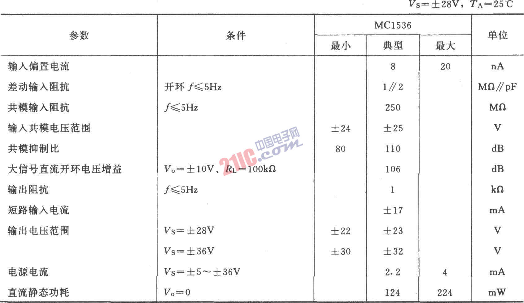 MC1536集成運放的主要參數(shù):