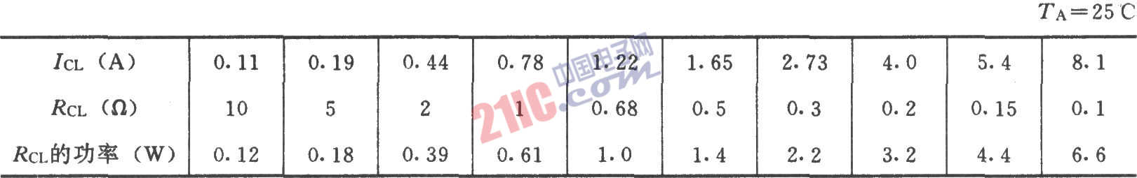 限流值ICL與限流電阻RCL的對應(yīng)關(guān)系: