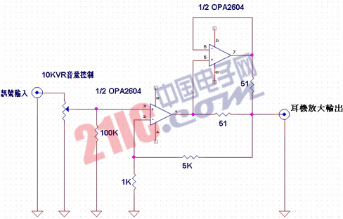 上圖為網(wǎng)上很流行的一款用運(yùn)算放大器做的耳放,當(dāng)然可以用其它的雙運(yùn)放來代替,以得到不同的音色,上圖中用兩個(gè)放大器可以提高電流輸出能力,從而可以推動(dòng)高阻耳機(jī),大多高檔耳機(jī)都是高阻抗的。在國(guó)外網(wǎng)站上用OP234 或OP2134(雙運(yùn)放)來做耳機(jī)放大器比較流行,因?yàn)樵?strong>運(yùn)放在低電壓工作時(shí)的性能不錯(cuò),這樣可以方便用電池來供電。做成便攜式的耳放。