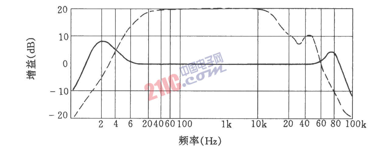 上圖曲線中,虛線為未加頻率補(bǔ)償前的頻響曲線圖;實(shí)線為加頻率補(bǔ)償后的頻響曲線圖。