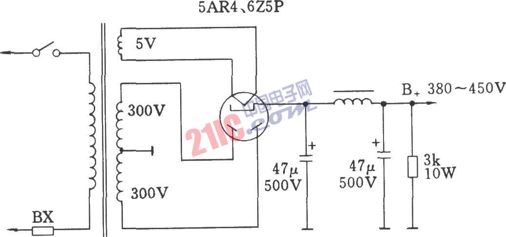 旁熱式整流電子管的高壓整流電路
