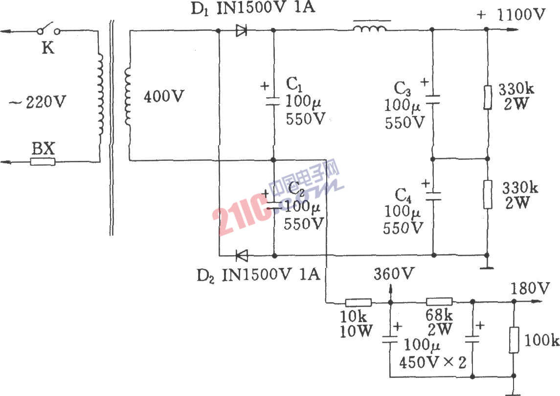 此1100V高壓可供給211、811、845等高屏壓功放管使用。