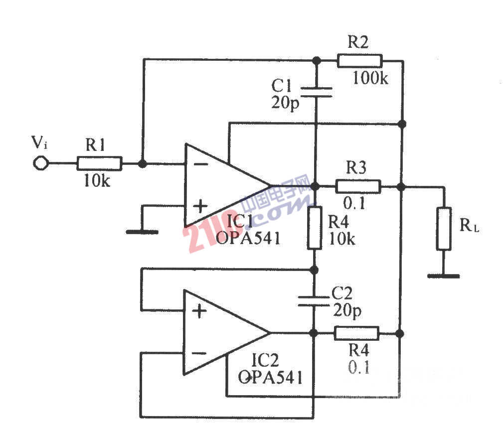 輸出電流達(dá)10A的功率放大電路
