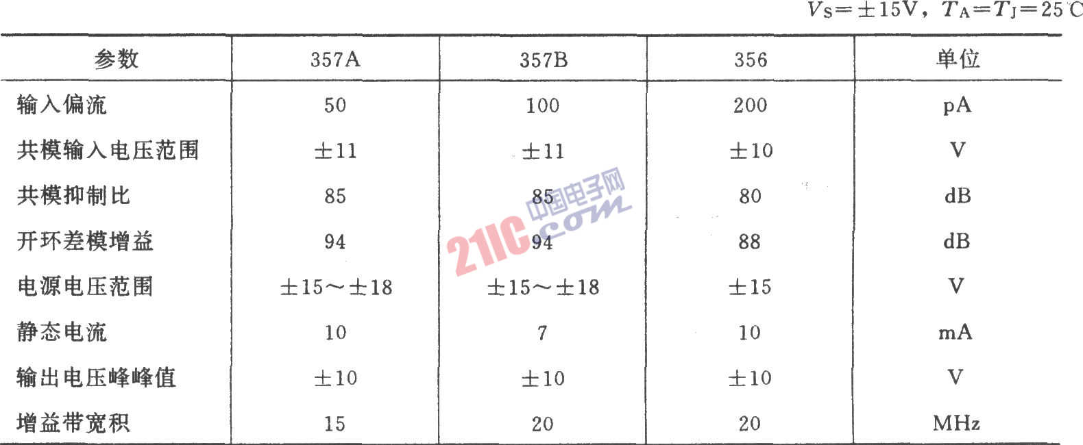集成運放357的主要參數(shù)(典型值):