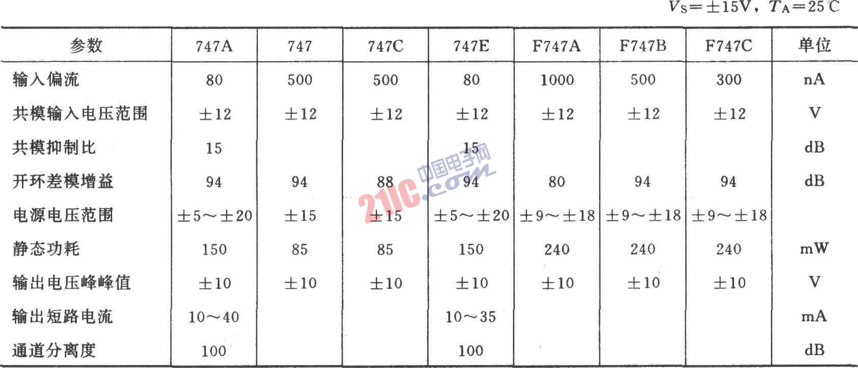 [導讀] 747集成雙運放的主要參數(shù)(典型值):