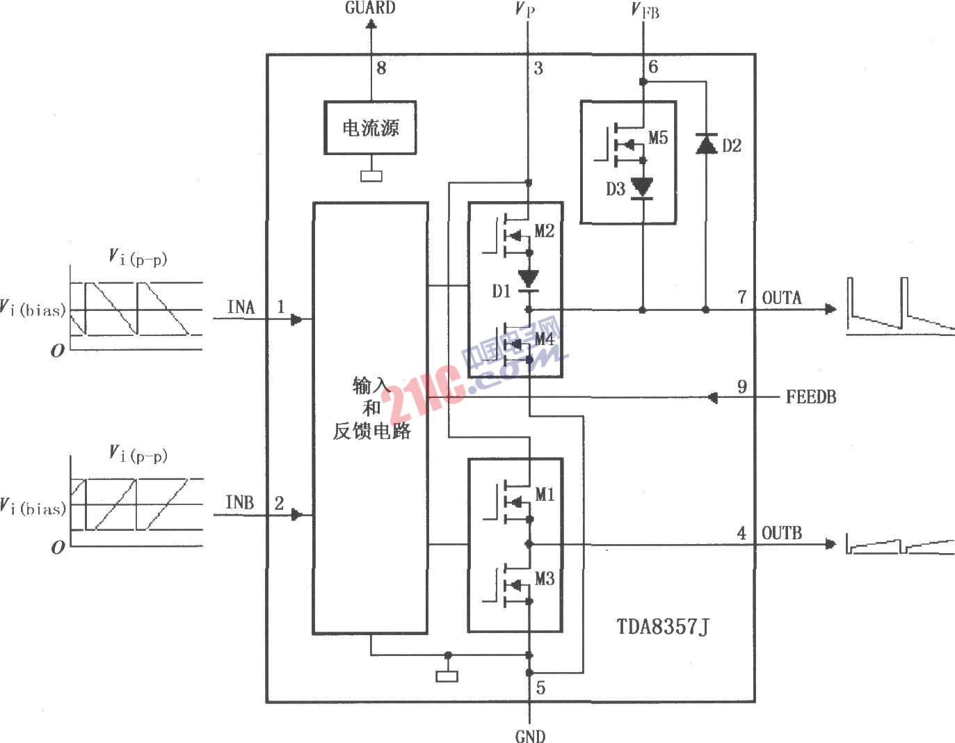 內(nèi)部功能電路與輸入輸出波形: