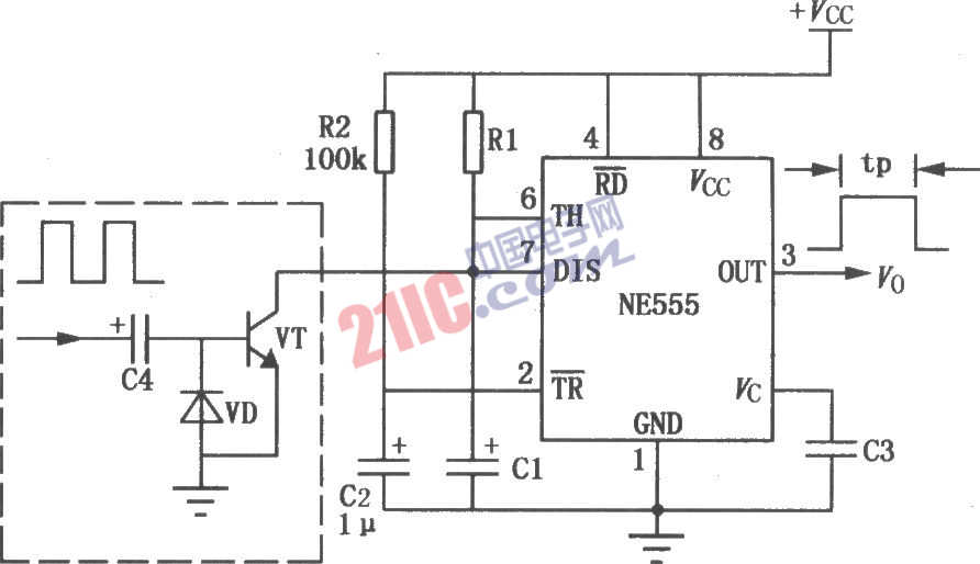 本電路原本是一個(gè)通電延時(shí)型的控制電路,延時(shí)時(shí)間由定時(shí)元件Rl、C1決定。但在帶了“看門狗”電路后,可以利用它作為某些應(yīng)用系統(tǒng)的監(jiān)視電路。 |