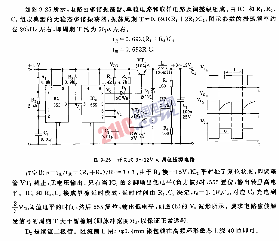555開(kāi)關(guān)式3—12v可調(diào)穩(wěn)壓源電路圖
