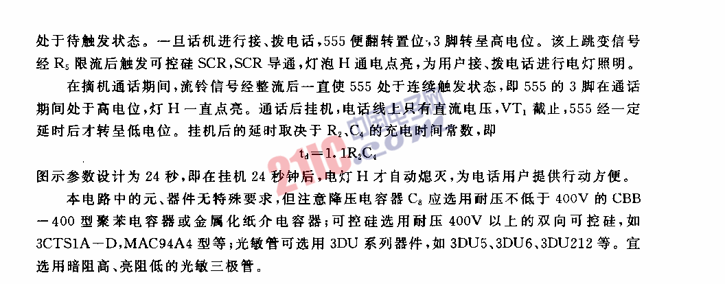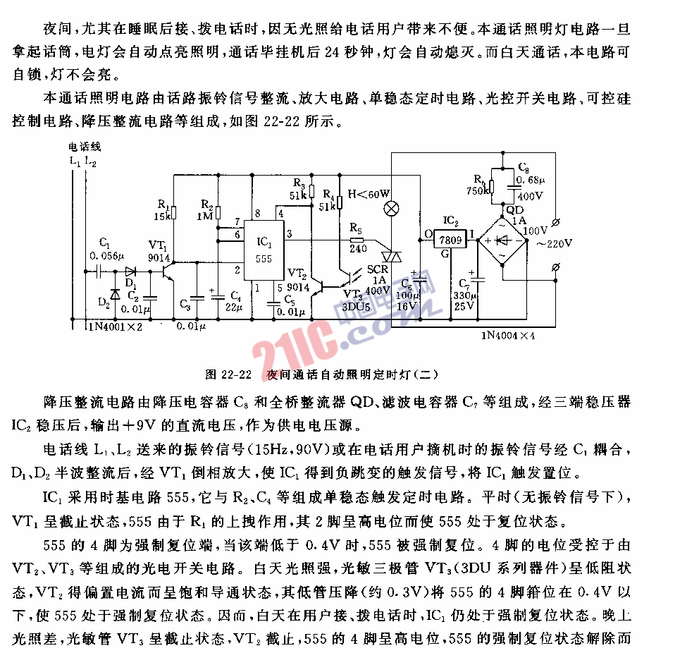 555夜間通話自動(dòng)照明定時(shí)燈電路(二)