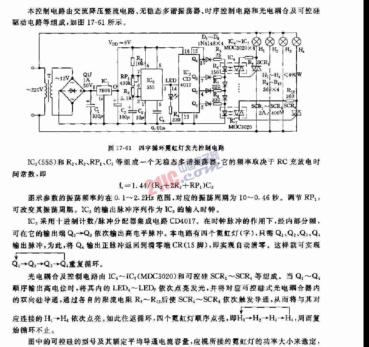 555四字循環(huán)霓虹燈發(fā)光控制電路圖