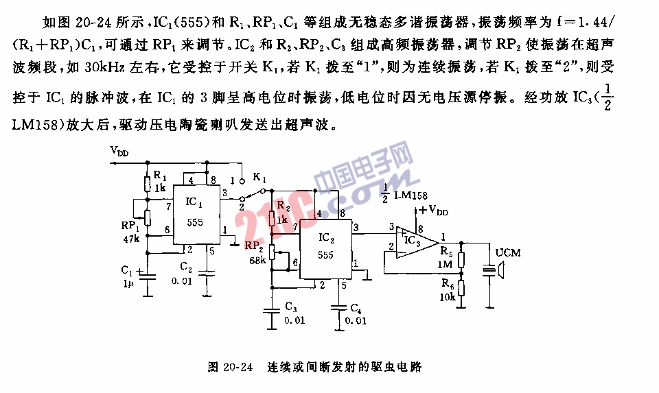 555連續(xù)或間斷發(fā)射的驅(qū)蟲電路圖