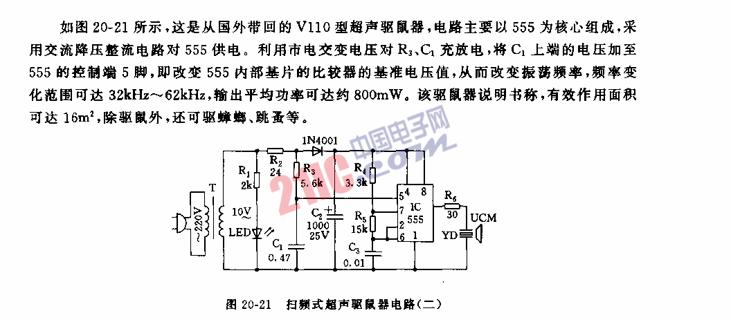 555掃頻式超聲驅(qū)鼠器電路(二)