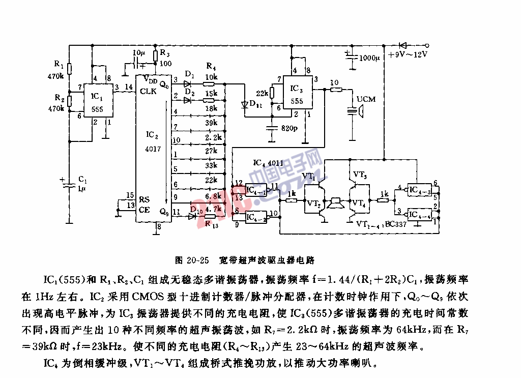 555寬帶超聲波驅(qū)蟲(chóng)器電路圖