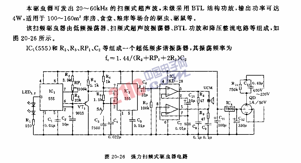 555強(qiáng)力掃頻式驅(qū)蟲器電路圖