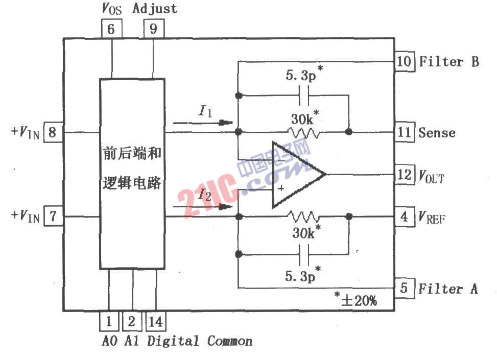 PGA202是數(shù)字控制可編程增益G=1、10、100、1000的單片儀表放大器,PGA203提供的增益G=1、2、4、8。兩者均有與CMOS或TTL。兼容的輸入,便于與微處理器接口。兩者都有FET輸入和一種新的跨導(dǎo)電路,使得在帶寬內(nèi)的增益幾乎保持常數(shù)。增益和失調(diào)電壓采用激光校正,使用時無需外部元件。PGA202/203采用陶瓷封裝和塑料封裝兩種形式,陶瓷封裝可在整個工業(yè)級溫度范圍內(nèi)工作,塑料封裝可在整個商業(yè)級溫度范圍內(nèi)工作。其引腳排列如圖所示。