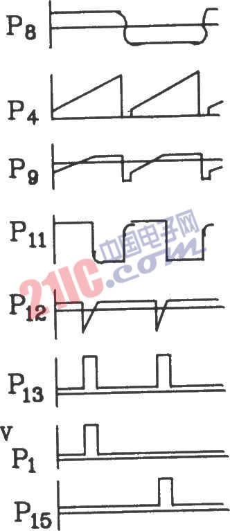 KJ009的基本性能與KJ004相同,可以互換使用。由于器件內(nèi)部采用了反向阻斷四級(jí)硅晶閘管作脈沖記憶,提高了抗干擾能力和觸發(fā)脈沖的前沿陡度,脈沖的寬度有較大的調(diào)節(jié)范圍。該電路適用于單相、三相全控橋式供電裝置中作可控硅的雙路脈沖移相觸發(fā)。兩路相位差180°的移相脈沖可以方便地構(gòu)成全控橋式觸發(fā)線路。該電路具有輸出負(fù)載能力大、鋸齒波性能好、正負(fù)半周脈沖相位均衡性好、移相范圍寬、對(duì)同步電壓要求低、有脈沖列調(diào)制輸出端等功能和特點(diǎn)。 電參數(shù)如下:電源電壓:直流+15V,-l5V,允許波動(dòng)±5%(±10%功能正常)。電源電流:正電流≤15mA,負(fù)電流≤10mA。同步電壓:任意值。同步輸入端允許最大同步電流:6 mA(有效值)。移相范圍:≥l70°(同步電壓30V,同步輸入電阻15kΩ)。鋸齒波幅度:≥10V(幅度以鋸齒波出現(xiàn)平頂為準(zhǔn))。輸出脈沖: a.脈沖寬度:400µs~2ms(改變脈寬阻容元件達(dá)到)。 b.脈沖幅度:>13V。 c.最大輸出能力:l00mA(流出脈沖電流)。輸出反壓:BVceo≥18V(測(cè)試條件:Ie≤100µA)。正負(fù)半周脈沖相位不均衡度≤±3°。 KJ009采用雙列直插l6腳封裝,如圖所示。