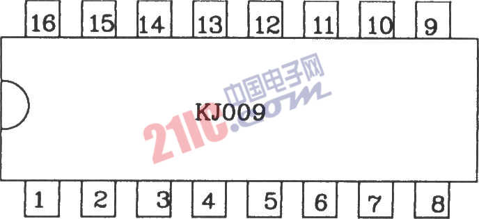 KJ009引腳圖 KJ009由同步檢測(cè)電路,鋸齒波形成電路,移相電壓、偏移電壓和鋸齒波電壓綜合比較放大電路、脈沖記憶電路及功率放大電路等部分組成。由KJ009組成的應(yīng)用電路如圖所示。