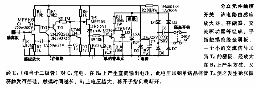 分立元件觸摸開(kāi)關(guān)電路圖