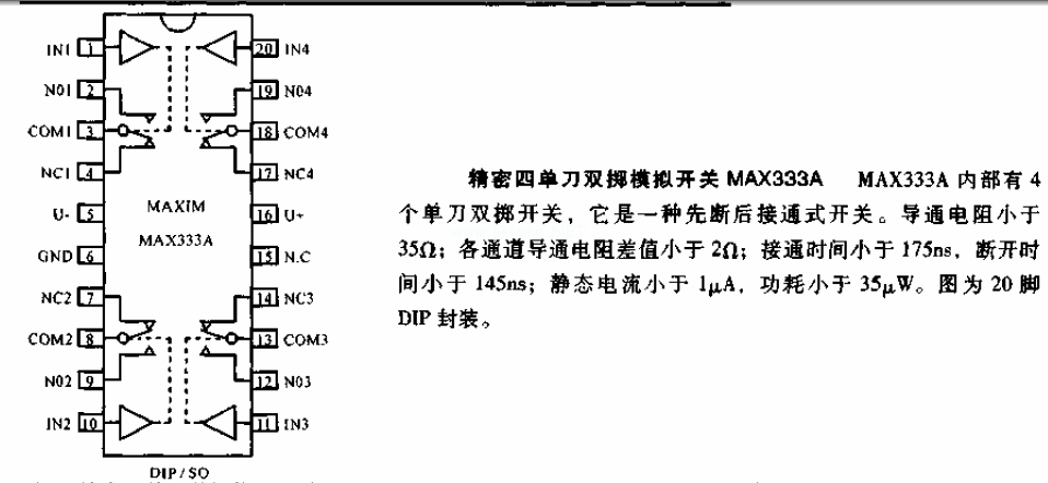 精密四單刀雙擲模擬開(kāi)關(guān)電路圖