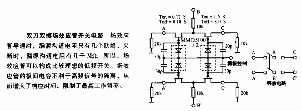 雙刀雙擲場(chǎng)效應(yīng)管開關(guān)電路圖