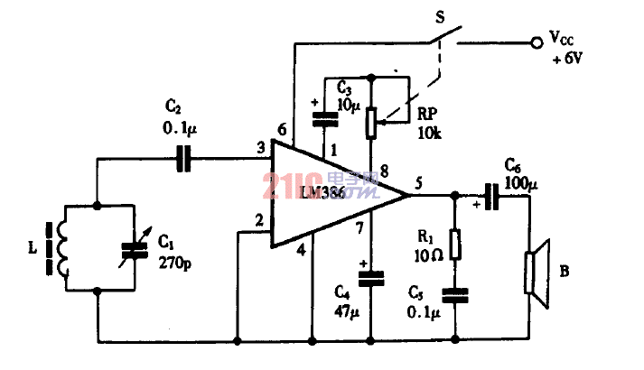 可用0.088高強度漆包線在10X10(mm)中頻變壓器工字型磁芯上繞360圈,電感量為3mH,諧振電容選取 2200pF瓷片電容器,W可選用微調(diào)電阻,其他元件無特殊要求。