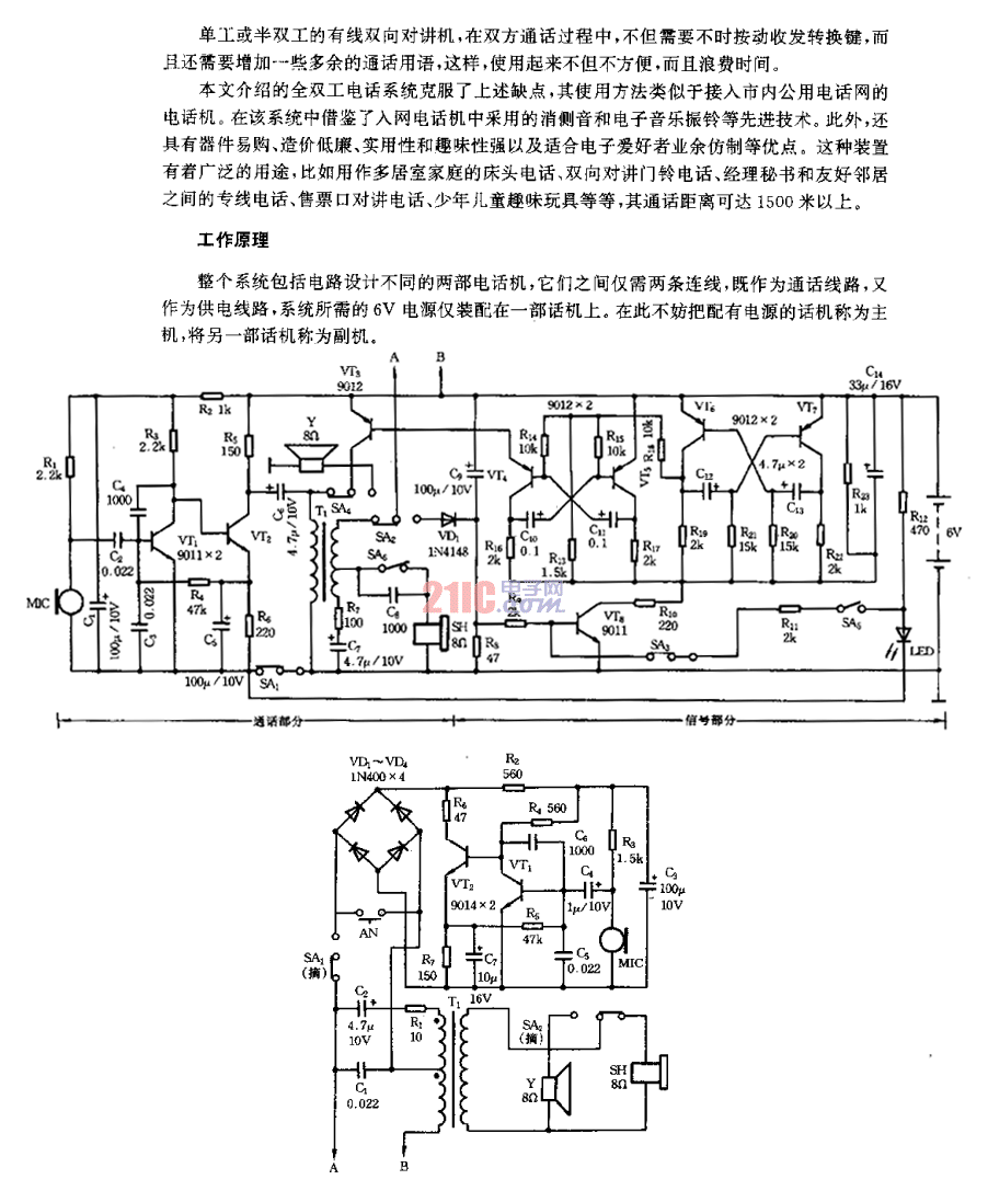 全雙工電話系統(tǒng)電路圖