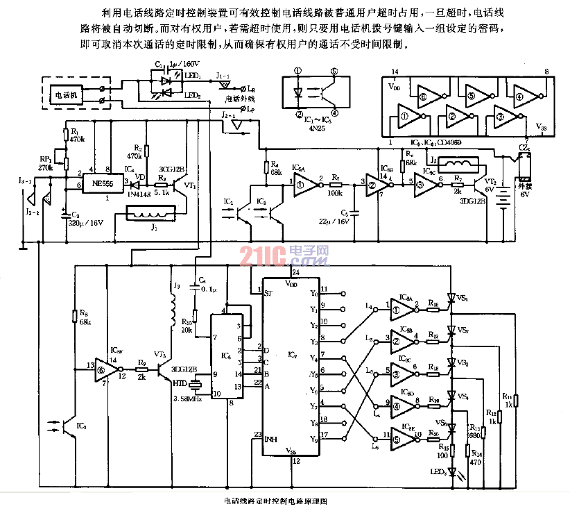 新穎的電話(huà)線(xiàn)路定時(shí)控制裝置電路圖