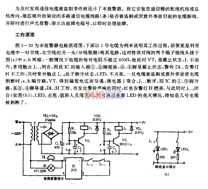 通信電纜防盜報(bào)警器電路圖