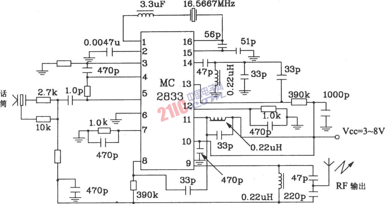 MC2833無(wú)線電發(fā)射專用電路是MC2831的改進(jìn)型。