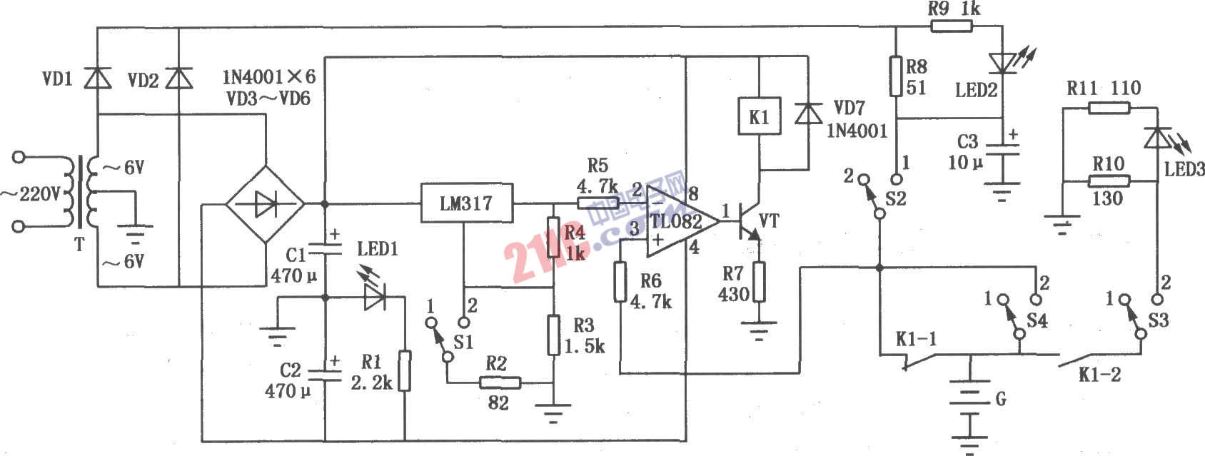 本電路能使兩節(jié)鎘鎳電池在充電至3V或放電至l.34V時(shí),自動(dòng)切斷充電或放電回路,有效地防止過充電或過放電現(xiàn)象。
