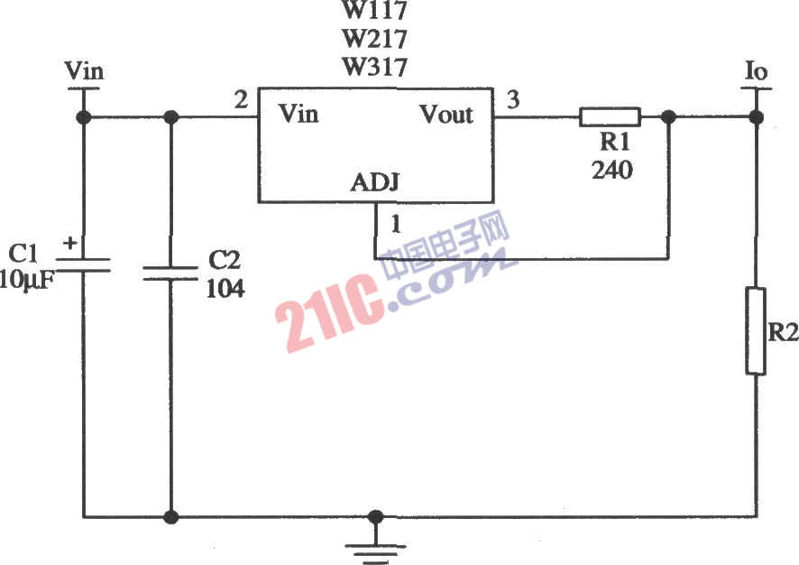 如圖所示的電路是由W117/W217/W317構(gòu)成的恒流源電路,其中輸出電流為: