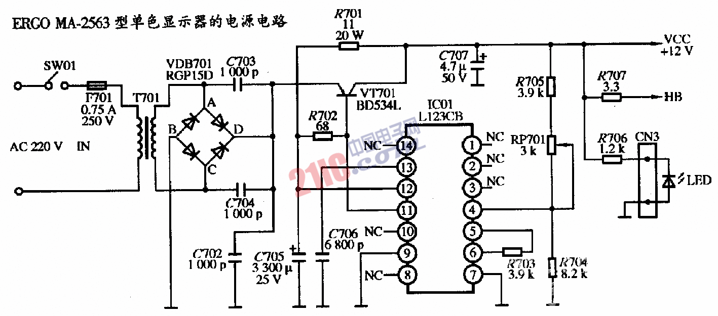 ERGO MA-2563型單色顯示器的電源電路圖